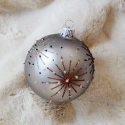 Lot De 6 Boules De Noël (D80 Mm) En Verre Kery Blanc Laine, Brun Gingembre Et Gris Marbre