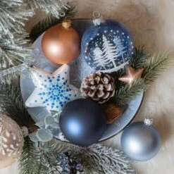 Lot De 6 Boules De Noël (D80 Mm) En Verre Kery Blanc Laine, Brun Gingembre Et Gris Marbre