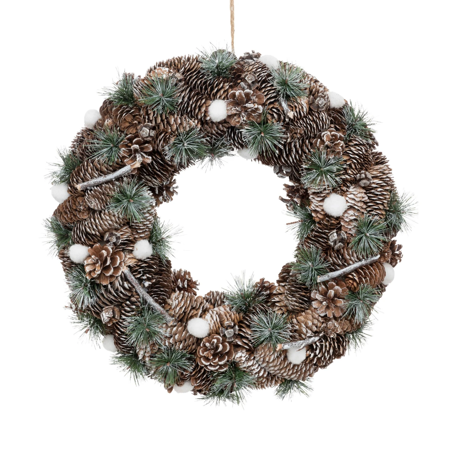 Matière : branches de sapin artificielles et éléments décoratifs naturels.