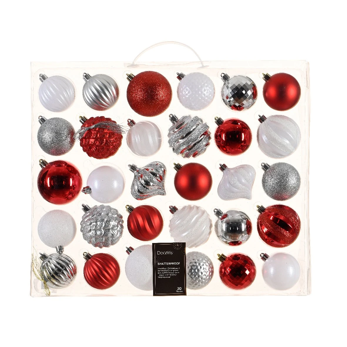 Composition du lot : Ce lot est composé d’un mélange de boules mates, brillantes et pailletées. Les boules ont une dimension de 60 et 70 mm.