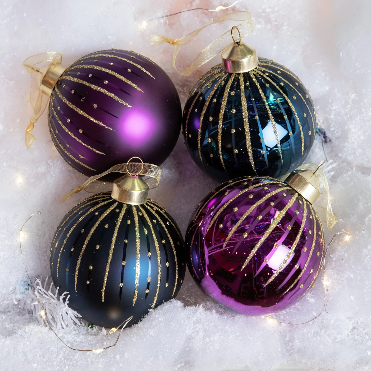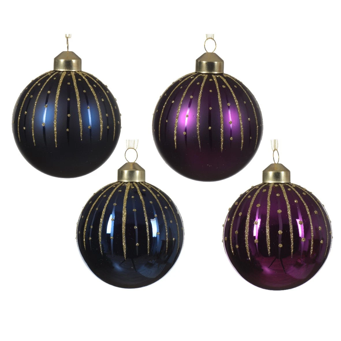 Lot de 12 boules en verre de couleurs bleu nuit et violet.