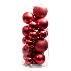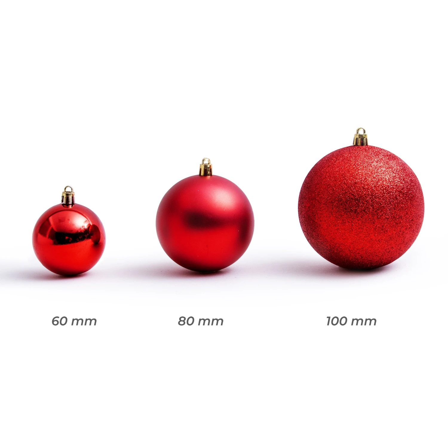 Composition du lot : 10 boules brillantes (D60 mm) , 6 boules mattes (D80 mm) et 4 boules à paillettes (D100 mm).