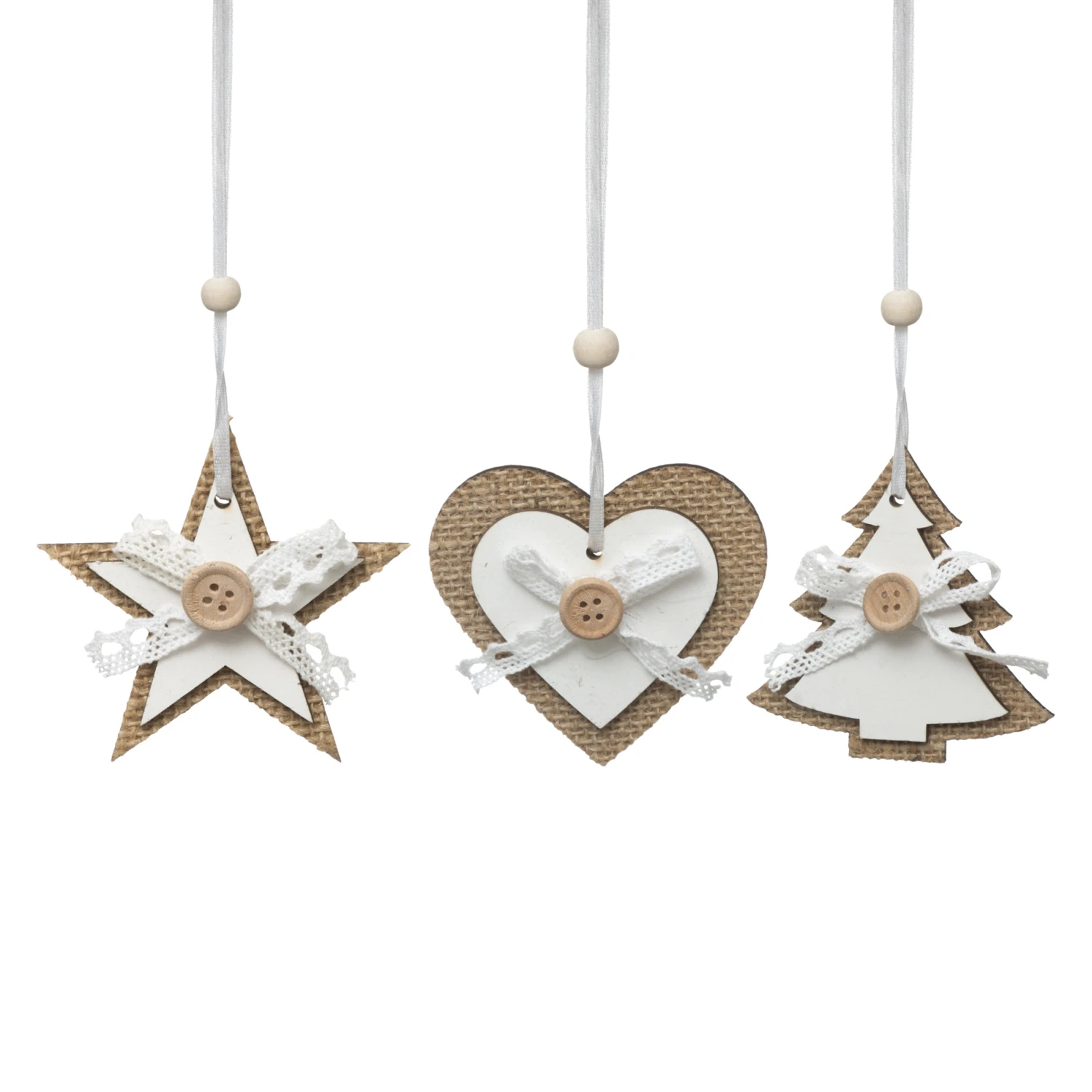 Suspension vendues en lot de 3 : 1 étoile, 1 cœur et 1 sapin.