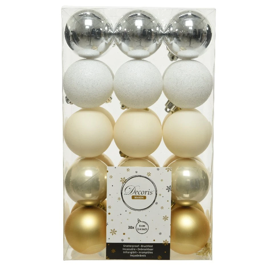 Composition du lot : 12 boules pailletées, 12 boules brillantes et 6 boules mates.