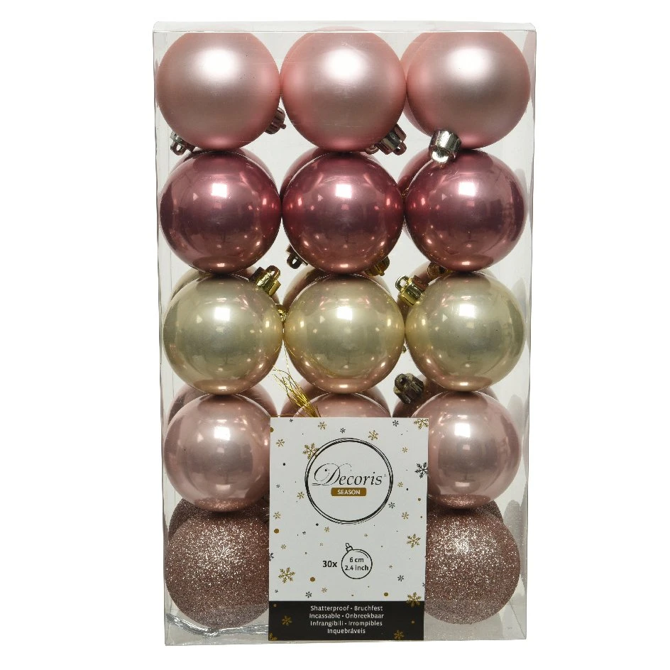 Composition du lot : 12 boules pailletées, 12 boules brillantes et 6 boules mates.