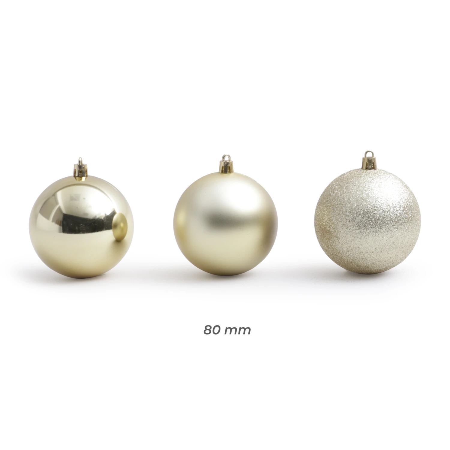 Composition du lot : Mélange de boules brillantes, pailletées et mates.