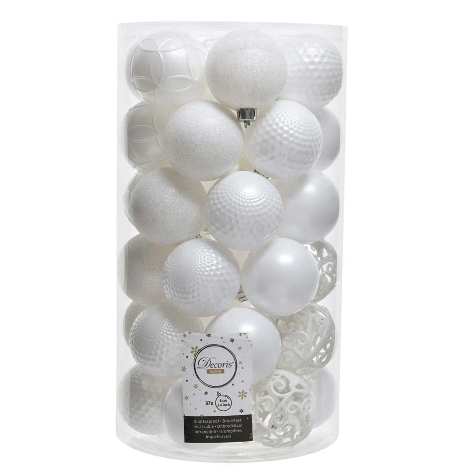 Composition du lot : 37 boules (D60 mm) : 19 boules brillantes, 12 boules pailletées et 6 boules mates
