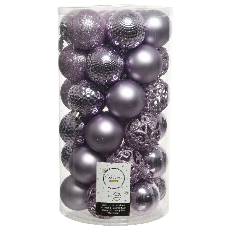 Composition du lot : 37 boules (D60 mm) : 19 boules brillantes, 12 boules pailletées et 6 boules mates