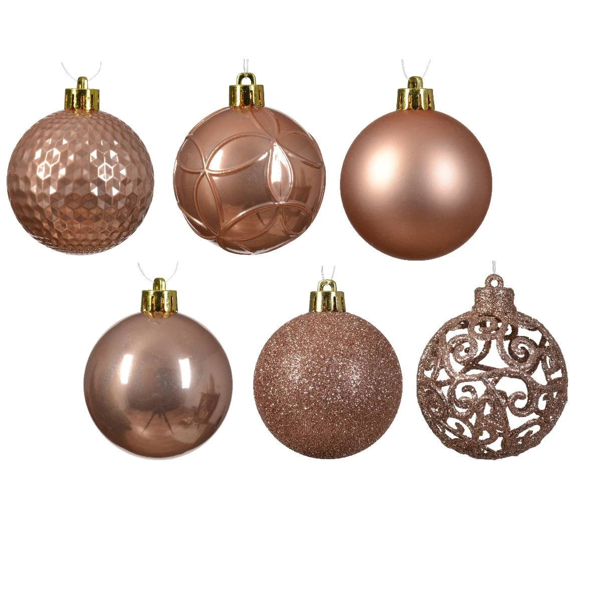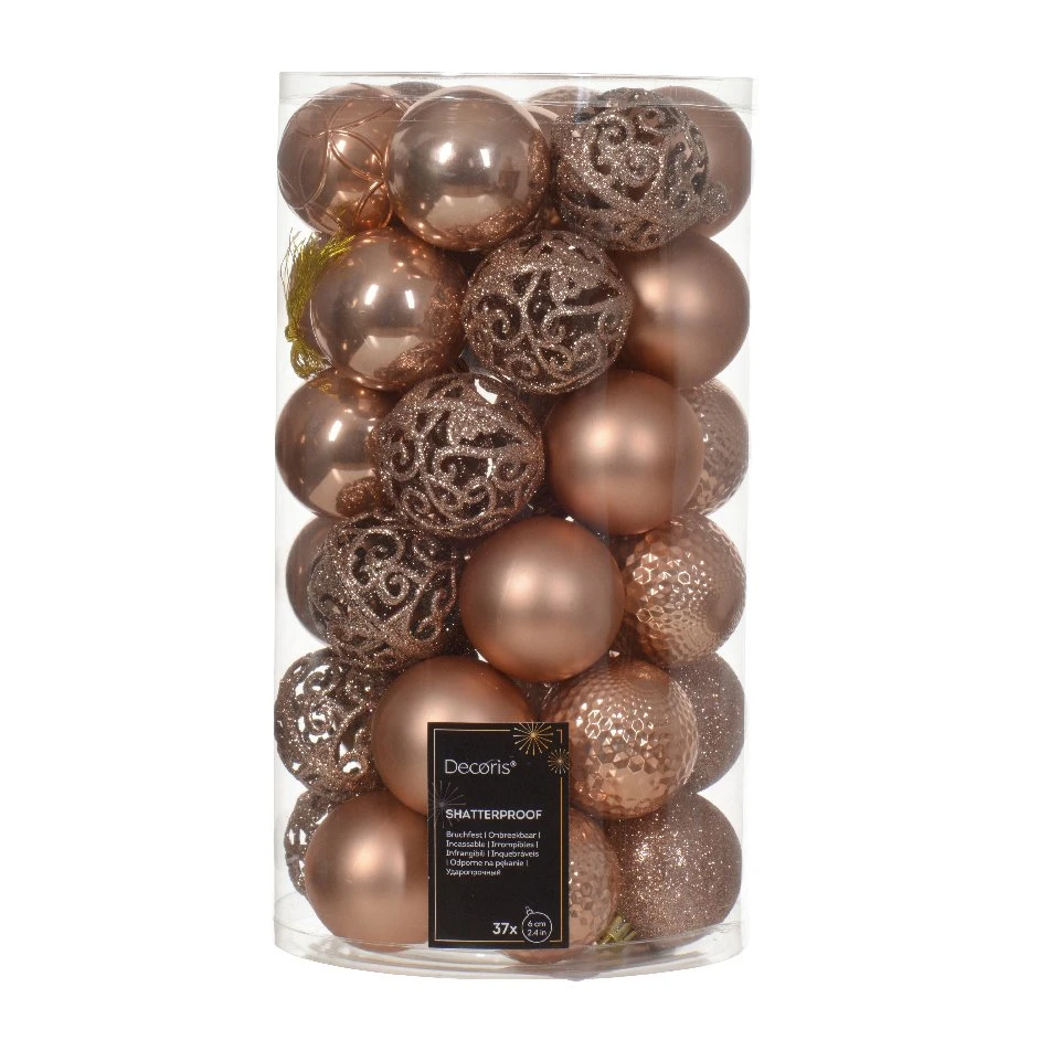 37 boules (D60 mm) : 19 boules brillantes, 12 boules pailletées et 6 boules mates
