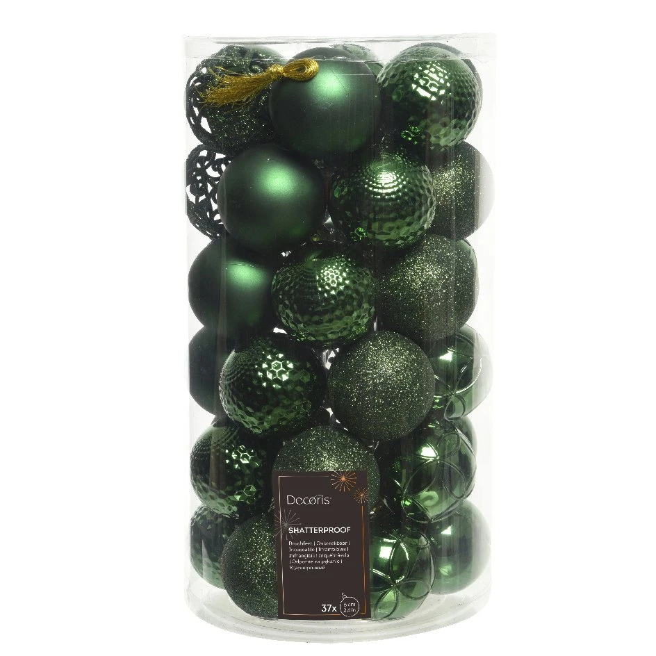 Composition du lot : 37 boules (D60 mm) : 19 boules brillantes, 12 boules pailletées et 6 boules mates