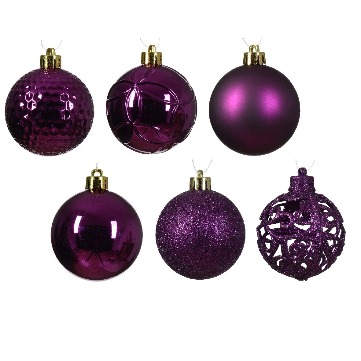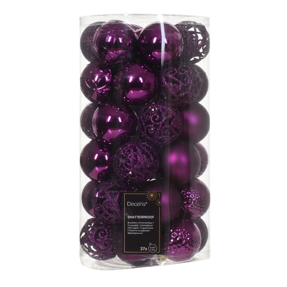 37 boules (D60 mm) : 19 boules brillantes, 12 boules pailletées et 6 boules mates