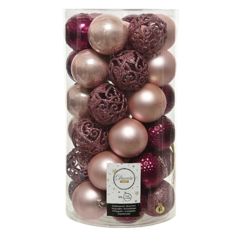 Composition du lot : 37 boules (D60 mm) en tout genre : mates, pailletées, brillantes …