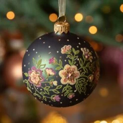 De charmants motifs fleuris sur cette boule de Noël pour un sapin doux.