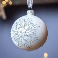 Ces boules de Noël délicates sont de style hivernal.