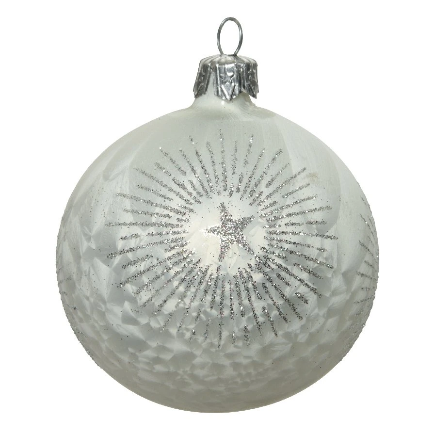 Ensemble de délicates boules en verre décorées de flocons pour une ambiance douce et soignée.