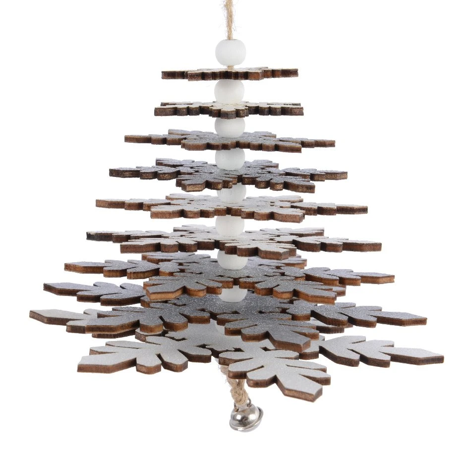 Suspension en forme de sapin, déclinée en version bois pour une décoration authentique et raffinée.