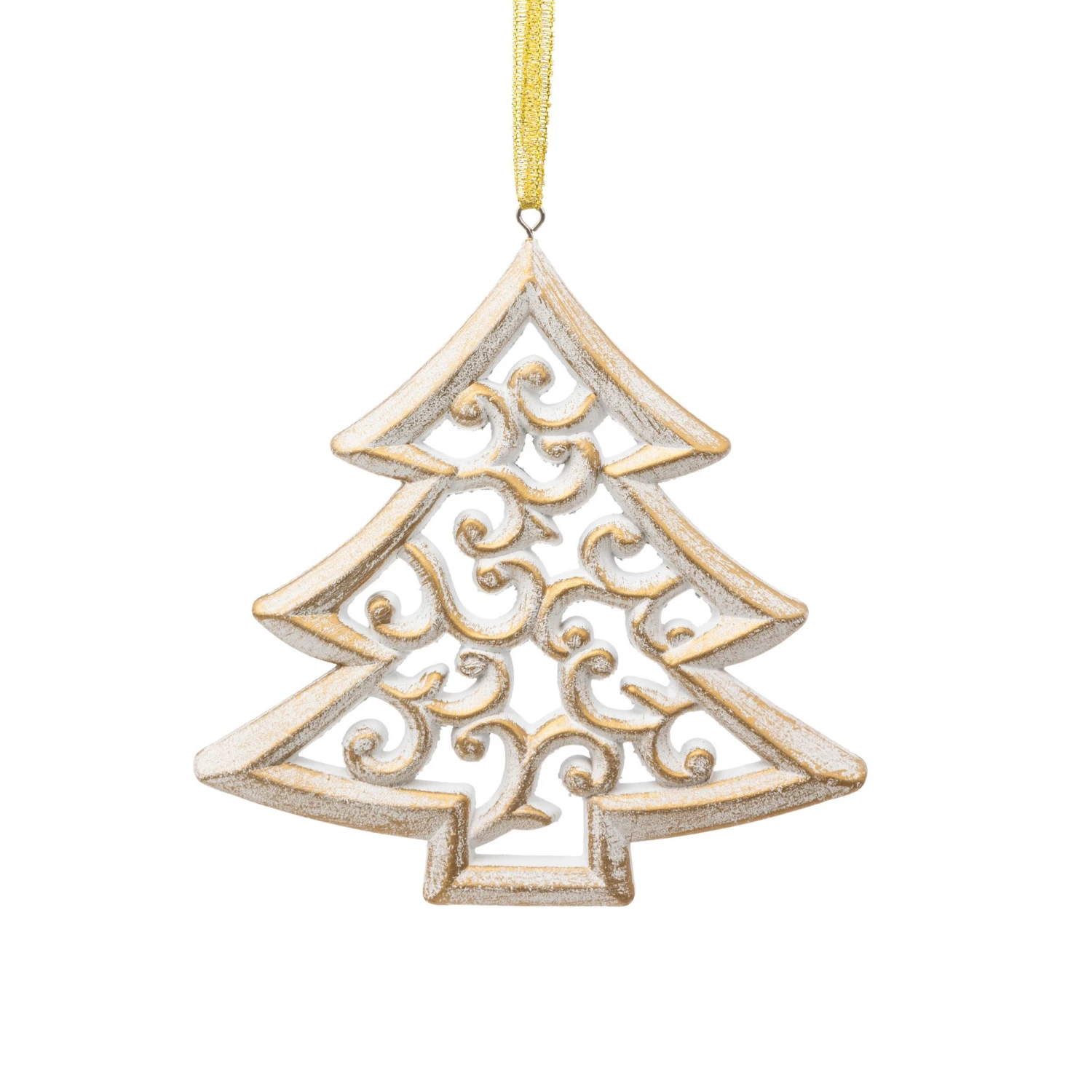 Suspension en forme de sapin, déclinée en version bois pour une décoration authentique et raffinée.