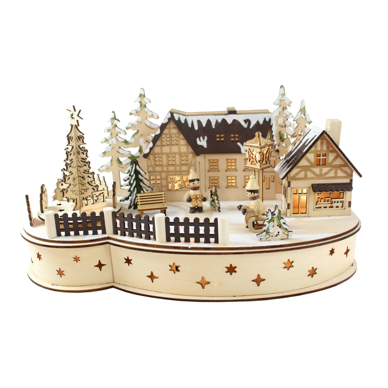 Un village de Noël traditionnel en bois qui s’illumine pour le bonheur de toute la famille.